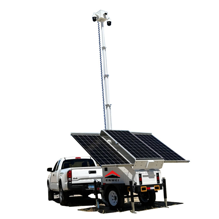 รถพ่วงรักษาความปลอดภัยพลังงานแสงอาทิตย์พร้อมเสาไฟฟ้า 7 เมตรสำหรับไซต์งานก่อสร้าง